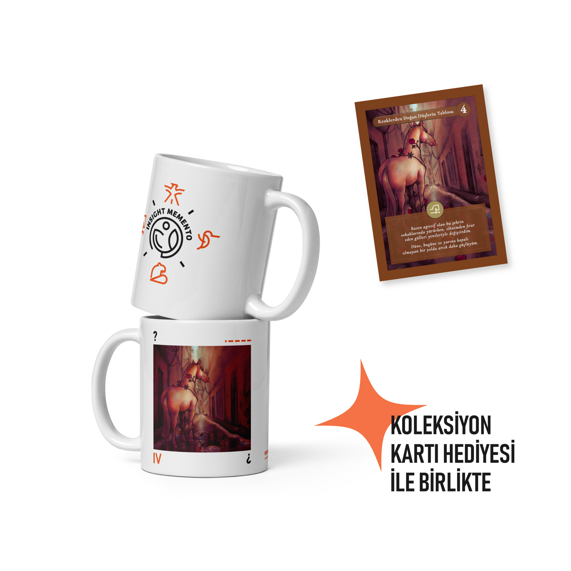 Insight Memento markasına ait 'Renklerden Doğan Düşlerin Tablosu' (• – – – –) sergisinin 4 (IV) numaralı eserinden ilhamla tasarlanan bu özel kupa, sanatı ve psikolojiyi günlük rutinlerinizle buluşturuyor. Sabah kahvenizi yudumlarken ya da günün yorgunluğunu bir fincan çayla geride bırakırken içme anınıza sıcak ve anlamlı bir dokunuş katmaya hazır.